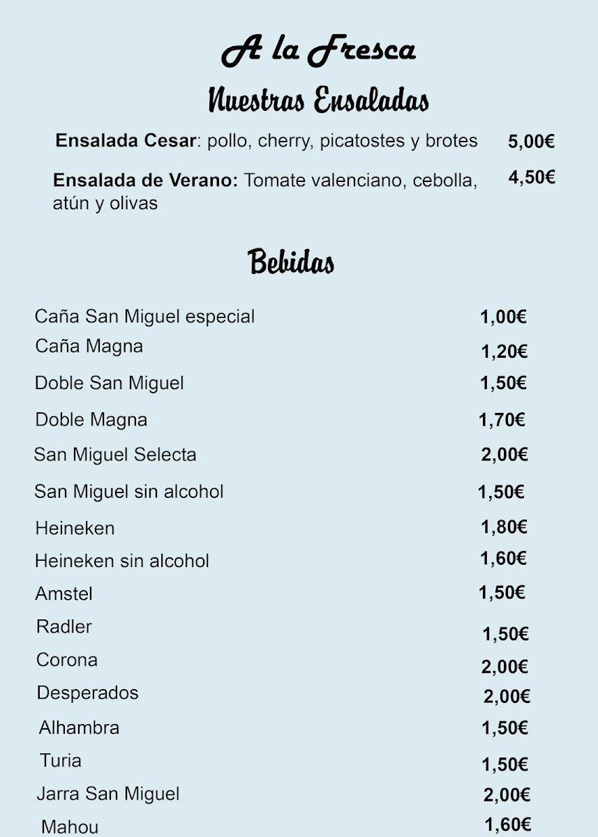 In essence, A La Fresca Albuixech stands out as a welcoming cafeteria perfect for enjoying a leisurely meal or a quick snack any time of day. Whether you're grabbing a quick coffee in the morning or looking for a place to unwind with friends over tapas and beers in the evening, A La Fresca offers a little piece of culinary paradise just for you. Don't miss out on experiencing the local favorite where every visit is filled with laughter, satisfaction, and delicious treats!